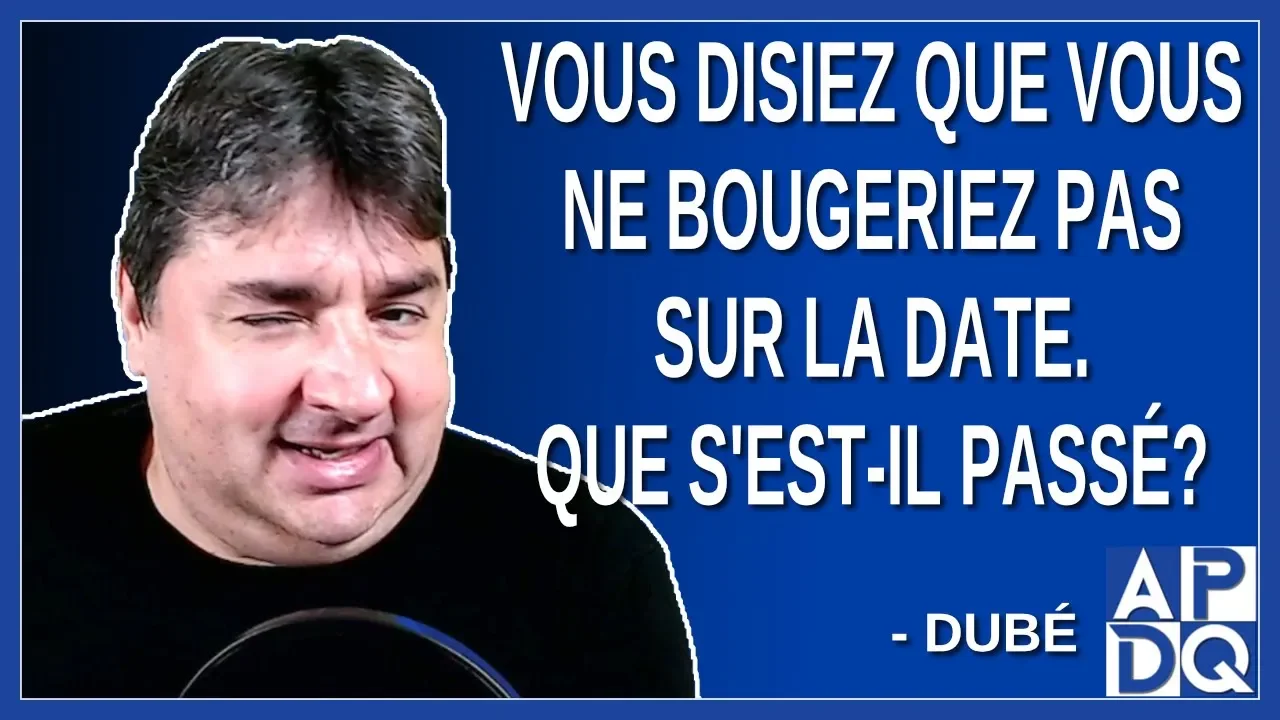 Hier encore vous disiez que vous ne bougeriez pas sur la date du 15 octobre que s’est-il passé ? Demande une journaliste<br /><br />Rediffusion du dimanche 17 octobre à 18:00 sur le site de APDQ voici le lien pour le voir ou revoir directement sur le site:<br /><a href="https://www.actualitepolitiqueduquebec.com/article-et-video/17-octobre-2021-actualite-politique-du-quebec-en-rediffusion/" target="_blank" rel="nofollow">https://www.actualitepolitiqueduquebec.com/article-et-video/17-octobre-2021-actualite-politique-du-quebec-en-rediffusion/</a><br /><br />Extrait 1 du direct du 17 octobre<br /><a href="https://www.actualitepolitiqueduquebec.com/article-et-video/dube-a-un-message-pour-les-non-vaccines/" target="_blank" rel="nofollow">https://www.actualitepolitiqueduquebec.com/article-et-video/dube-a-un-message-pour-les-non-vaccines/</a><br /><br />Extrait 2 du direct du 17 octobre<br /><a href="https://www.actualitepolitiqueduquebec.com/article-et-video/hier-encore-vous-disiez-que-vous-ne-bougeriez-pas-sur-la-date-que-s-est-il-passe/" target="_blank" rel="nofollow">https://www.actualitepolitiqueduquebec.com/article-et-video/hier-encore-vous-disiez-que-vous-ne-bougeriez-pas-sur-la-date-que-s-est-il-passe/</a><br /><br />Extrait 3 du direct du 17 octobre<br /><a href="https://www.actualitepolitiqueduquebec.com/article-et-video/ce-que-mes-gestionnaire-m-ont-explique-ma-donne-le-coup-de-grace-dit-dube/" target="_blank" rel="nofollow">https://www.actualitepolitiqueduquebec.com/article-et-video/ce-que-mes-gestionnaire-m-ont-explique-ma-donne-le-coup-de-grace-dit-dube/</a><br /><br />Extrait 4 du direct du 17 octobre<br /><a href="https://www.actualitepolitiqueduquebec.com/article-et-video/avec-cette-decision-vous-donnez-raison-aux-antivaccins-que-leur-dites-vous/" target="_blank" rel="nofollow">https://www.actualitepolitiqueduquebec.com/article-et-video/avec-cette-decision-vous-donnez-raison-aux-antivaccins-que-leur-dites-vous/</a><br /><br />Pour m'aider a continuer ma mission fais-moi un don svp:<br />Paypal : <a href="https://www.paypal.com/paypalme/DominickJasmin" target="_blank" rel="nofollow">https://www.paypal.com/paypalme/DominickJasmin</a><br />Faire un Don par Interac : [email protected]<br />Réponse ou validation à donner : Dominick<br /><br />Pour t'abonner gratuitement à mon Infolettre et recevoir un courriel tous les matins avec les 3 ou 4 extraits qui vont sortir sur le site de APDQ et sur les réseaux sociaux dans la journée<br /><a href="https://www.actualitepolitiqueduquebec.com/inscris-toi-a-la-mailing-liste-de-apdq-avec-dominick/" target="_blank" rel="nofollow">https://www.actualitepolitiqueduquebec.com/inscris-toi-a-la-mailing-liste-de-apdq-avec-dominick/</a><br /><br />Abonne-toi à ma chaîne Rumble<br /><a href="https://rumble.com/c/APDQ" target="_blank" rel="nofollow">https://rumble.com/c/APDQ</a><br /><br />Rejoignez-nous sur Facebook<br /><a href="https://www.facebook.com/actualitepolitiqueduquebec/" target="_blank" rel="nofollow">https://www.facebook.com/actualitepolitiqueduquebec/</a><br /><br />Abonne-toi à ma chaine YouTube pour les Direct du dimanche<br /><a href="https://www.youtube.com/c/ActualitéPolitiqueDuQuébec" target="_blank" rel="nofollow">https://www.youtube.com/c/ActualitéPolitiqueDuQuébec</a><br /><br />Abonne-toi à ma chaine Odyssee pour ne pas se perdre de vue<br /><a href="https://odysee.com/$/invite/@Actualitepolitiqueduquebec" target="_blank" rel="nofollow">https://odysee.com/$/invite/@Actualitepolitiqueduquebec</a>:0<br /><br />Rejoingnez-nous sur Twitter<br /><a href="https://twitter.com/PolitiqueQuebec" target="_blank" rel="nofollow">https://twitter.com/PolitiqueQuebec</a><br />...<br /><a href="https://www.youtube.com/watch?v=uLXp_uYIEE0" target="_blank" rel="nofollow">https://www.youtube.com/watch?v=uLXp_uYIEE0</a>