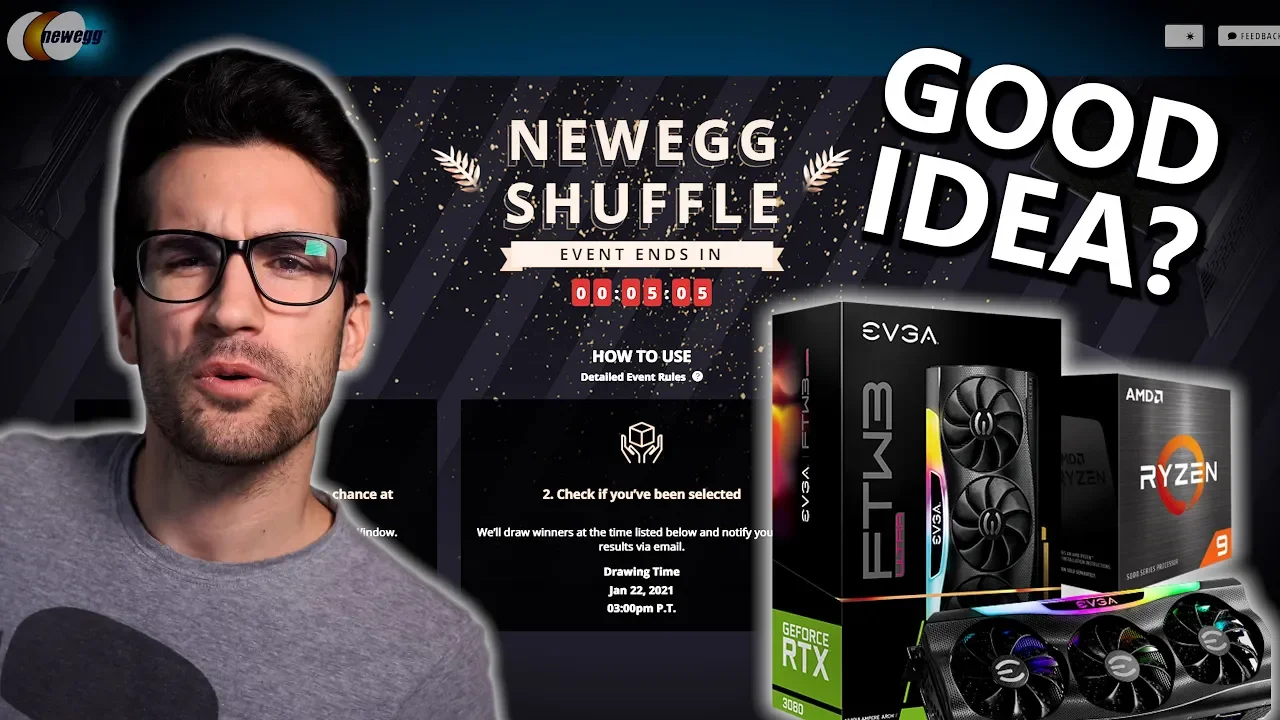 Newegg's devised a new way to shun bots and scripts... a raffle system!<br /><br />SPONSOR: Check out the be quiet! Silent Base 802: <a href="https://geni.us/G9ro" target="_blank" rel="nofollow">https://geni.us/G9ro</a><br /><br />Learn more about Newegg Shuffle here: <a href="https://bit.ly/2LRAoHM" target="_blank" rel="nofollow">https://bit.ly/2LRAoHM</a><br /><br />🎬 My studio gear on Amazon:<br />Sony a6600 (Primary): <a href="https://geni.us/k8VBToq" target="_blank" rel="nofollow">https://geni.us/k8VBToq</a><br />Sony a6400 (Secondary): <a href="https://geni.us/24nqw" target="_blank" rel="nofollow">https://geni.us/24nqw</a><br />2x Pixio PX277 Prime 165Hz IPS Monitors: <a href="https://geni.us/bCg4nD" target="_blank" rel="nofollow">https://geni.us/bCg4nD</a><br />Neewer LED Lighting Kit: <a href="http://geni.us/9VTXr0" target="_blank" rel="nofollow">http://geni.us/9VTXr0</a><br />Audio-Technica AT2035: <a href="http://geni.us/xvQc" target="_blank" rel="nofollow">http://geni.us/xvQc</a><br />Yamaha MG10XU Mixer: <a href="http://geni.us/d4VvGM" target="_blank" rel="nofollow">http://geni.us/d4VvGM</a><br />Neewer Microphone Arms: <a href="http://geni.us/1w5Sx2Y" target="_blank" rel="nofollow">http://geni.us/1w5Sx2Y</a><br />Arrowzoom Sound-Damping Foam Panels: <a href="http://geni.us/EKFxZc" target="_blank" rel="nofollow">http://geni.us/EKFxZc</a><br /><br />📱 Follow me on social media:<br />TWITCH: <a href="http://www.twitch.tv/GregSalazar" target="_blank" rel="nofollow">http://www.twitch.tv/GregSalazar</a><br />FACEBOOK: <a href="http://www.facebook.com/GregSalazarYT" target="_blank" rel="nofollow">http://www.facebook.com/GregSalazarYT</a><br />TWITTER: <a href="http://www.twitter.com/GregSalazarYT" target="_blank" rel="nofollow">http://www.twitter.com/GregSalazarYT</a><br />INSTAGRAM: <a href="http://www.instagram.com/GregSalazarYT" target="_blank" rel="nofollow">http://www.instagram.com/GregSalazarYT</a><br /><br />💻 Join our public Discord server: <a href="https://discord.gg/jYA9Xvp" target="_blank" rel="nofollow">https://discord.gg/jYA9Xvp</a><br /><br />⭐ Consider subscribing! <a href="https://www.youtube.com/gregsalazar?sub_confirmation=1" target="_blank" rel="nofollow">https://www.youtube.com/gregsalazar?sub_confirmation=1</a><br /><br />DISCLOSURES: All Genius links are tied to our Amazon Associate account, from which we earn a small sales commission. Links containing a 'bit.ly' reference forwarding to Newegg are tied to our Rakuten account, from which we earn a small sales commission. All sponsored links and comments will contain the word "SPONSOR" or "AD." Any additional revenue stream will be disclosed with similar verbiage.<br /><br />#Newegg #Shuffle #Ampere<br />...<br /><a href="https://www.youtube.com/watch?v=3n0uiRhnRLs" target="_blank" rel="nofollow">https://www.youtube.com/watch?v=3n0uiRhnRLs</a>