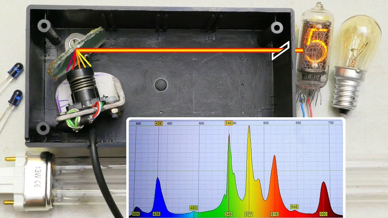 Today, I removed the infrared filter from the camera in my webcam + CD based DIY spectrometer. I measure the visible and infrared spectra of daylight, laptop LCD monitor, tungsten lamp, fluorescent lamp, germicidal UVC lamp, sodium and mercury discharge lamp, neon lamp, nixie tube, remote control infrared LEDs and so on.<br /><br />The previous episode:<br /><a href="https://youtu.be/p3MzQ1OF3lk" target="_blank" rel="nofollow">https://youtu.be/p3MzQ1OF3lk</a><br /><br />Please support my channel on Patreon:<br /><a href="https://www.patreon.com/DiodeGoneWild" target="_blank" rel="nofollow">https://www.patreon.com/DiodeGoneWild</a><br /><br />My Instagram:<br /><a href="https://www.instagram.com/savage_danyk/" target="_blank" rel="nofollow">https://www.instagram.com/savage_danyk/</a><br />...<br /><a href="https://www.youtube.com/watch?v=4-kPvot_QsQ" target="_blank" rel="nofollow">https://www.youtube.com/watch?v=4-kPvot_QsQ</a>