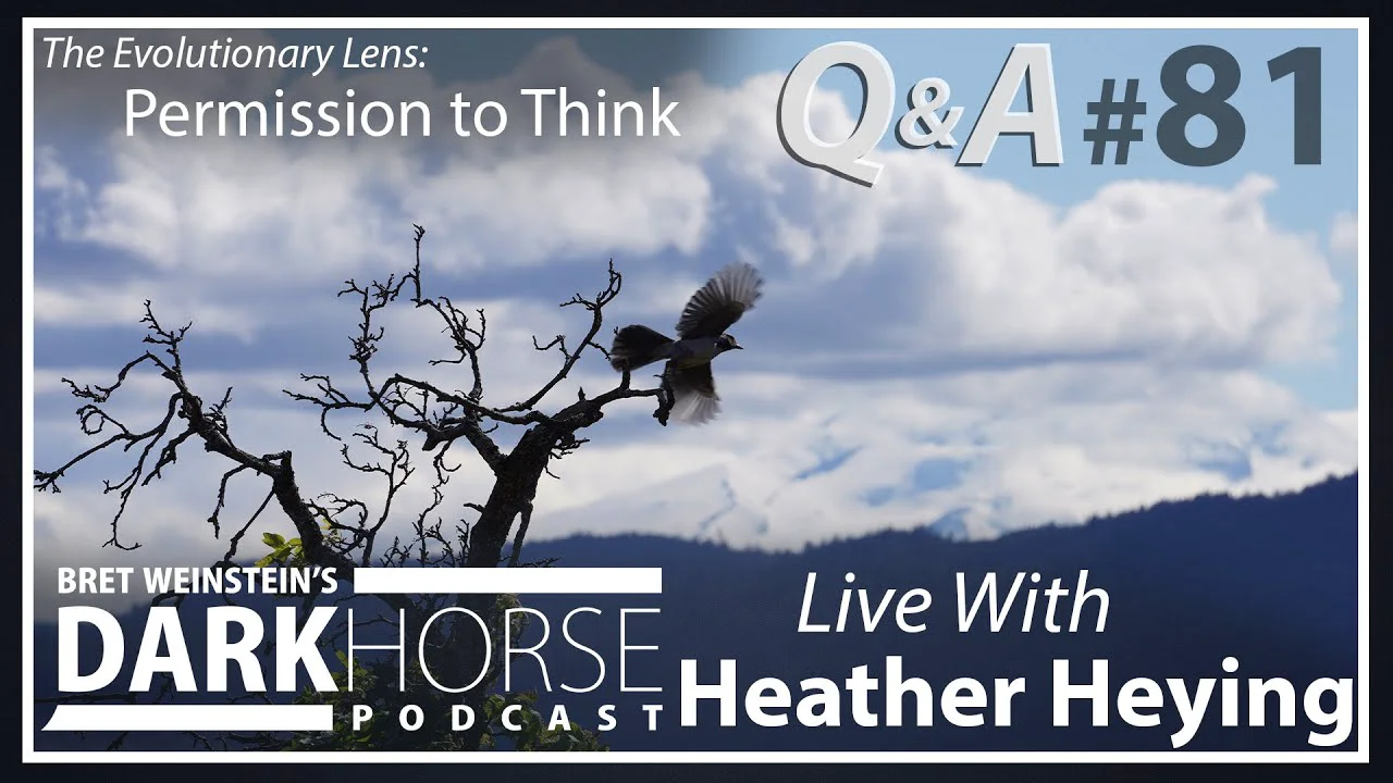 The Q & A section of the 81st live discussion between Bret Weinstein and Heather Heying on the DarkHorse Podcast.<br /><br />Our book, A Hunter-Gatherer’s Guide to the 21st Century, is now available for pre-sale at amazon. Publication date: 9-14-21: <a href="https://www.amazon.com/dp/0593086880/ref=cm_sw_r_tw_dp_5BDTABYFKRJKZBT5GSQA" target="_blank" rel="nofollow">https://www.amazon.com/dp/0593086880/ref=cm_sw_r_tw_dp_5BDTABYFKRJKZBT5GSQA</a><br /><br />Become a member of the DarkHorse LiveStreams, and get access to an additional Q&A livestream every month. Join at Heather's Patreon.<br /><br />Like this content? Subscribe to the channel, like this video, follow us on twitter (@BretWeinstein, @HeatherEHeying), and consider helping us out by contributing to either of our Patreons or Bret’s Paypal.<br /><br />Looking for clips from #DarkHorseLivestreams? Here are some, updated frequently: @DarkHorse Podcast Clips <br /><br />Theme Music: Thank you to Martin Molin of Wintergatan for providing us the rights to use their excellent music.<br /><br />Timestamps:<br />00:00 Welcome<br />00:45 Why didn't dinosaurs evolve back? And why no giant animals?<br />05:13 Favorite dinosaur<br />06:10 Sperm count to zero?<br />13:45 Diet, obesity, keto<br />18:10 Democracy, honesty, and coming clean<br />21:21 Revolutionary phenotype. And CRISPR impacting evolution negatively<br />25:18 UFOs and aliens follow up<br />29:04 Why is Ivermectin not being used in other countries?<br />34:08 Ivermectin on vaccine efficacy<br />35:21 Lab leak going mainstream link to vaccine roll out<br />36:30 Vaccines, fertility issues, getting outside<br />41:14 Trump and lab leak comment<br />42:01 Are there fewer insects?<br />44:48 Intersex people against women<br />54:01 Placentas, retroviruses, and aliens<br />58:11 Prince Harry on first amendment<br />59:41 Vaccines and Ivermectin cover up?<br />01:02:05 Excellence in equity<br />01:03:02 Cheese, ice cream, mammals, and aliens<br />01:04:13 mRNA vaccine rapid development<br />01:09:02 Cancel Darwin?<br />01:11:35 Reducing human population<br />01:13:13 Magnets, vaccines, and arms<br />01:14:35 Hypocrisy of the right<br />01:16:16 Connection between trans, sperm counts, and low testosterone<br />01:20:18 Wrap up<br />...<br /><a href="https://www.youtube.com/watch?v=wteYNTlQdKA" target="_blank" rel="nofollow">https://www.youtube.com/watch?v=wteYNTlQdKA</a>