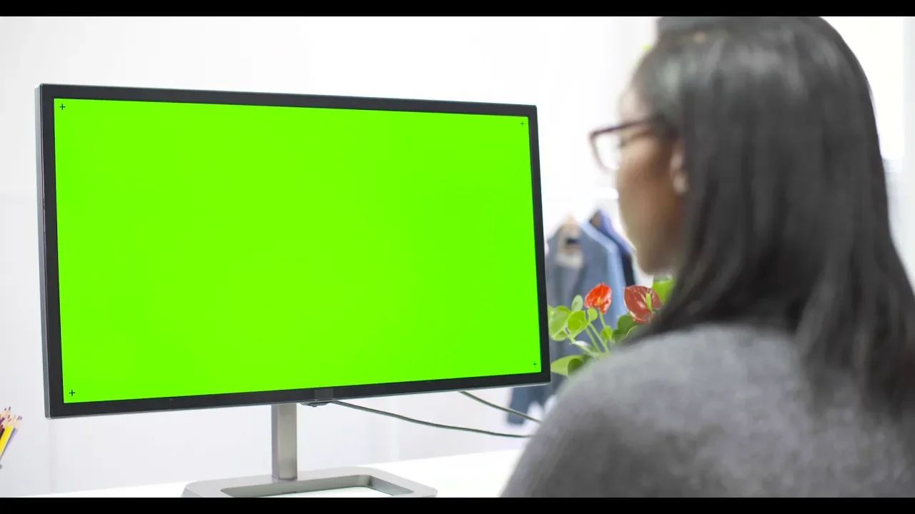 Woman Working at Computer Chroma Screen