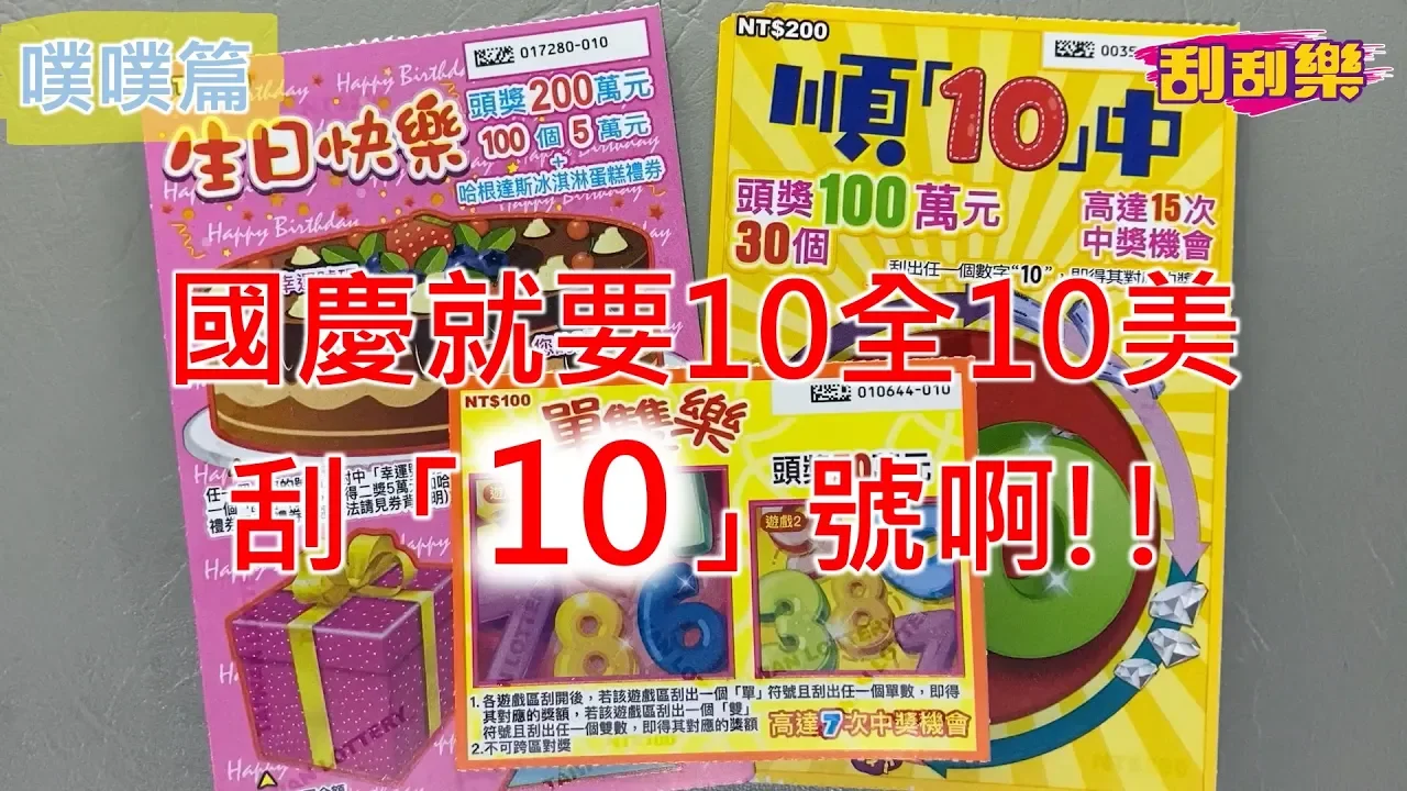 臉書社團→ <a href="https://www.facebook.com/groups/622976014947419/" target="_blank" rel="nofollow">https://www.facebook.com/groups/622976014947419/</a> 歡迎加入分享!!<br /><br />固定每周三中午12點15分固定更新,<br />新品上市不定時更新!!<br /><br />「小資實驗室」、「誰來選號?」、「噗爸偷偷刮」、「噗噗黑白刮」、「流水號任你組」、「幸運轉盤」、「幸運尾數」(幸運尾數為月更)擇一上線。<br /><br />新款上市及視情況不定時更新!!<br /><br />*「開新刮」、「刮刮樂上市預告」<br />配合台彩新刮刮卡上市,不定時上線。 <br />-----------------------------------------------------------------------------------------------------------------------------------------------------------<br /><br />遊戲主題:生日快樂<br />發行數量:4,073,400張<br />發行日期:109年10月06日(星期二)<br />下市日期:110年04月06日(星期二)<br />兌獎截止日期:110年07月06日(星期二)<br /><br />遊戲主題:順10中<br />發行數量:4,080,000張<br />發行日期:109年10月06日(星期二)<br />下市日期:110年04月06日(星期二)<br />兌獎截止日期:110年07月06日(星期二)<br /><br />遊戲主題:單雙樂<br />發行數量:4,080,000張<br />發行日期:109年10月06日(星期二)<br />下市日期:110年04月20日(星期二)<br />兌獎截止日期:110年07月20日(星期二)<br /><br />註:上述圖像、資訊及影片揭露之獎金分配皆由台灣彩券官方網站取得計算而來,如有誤植部份請以官方網站為主。<br /><br />近期歷史回顧:<br /><br />【開「新」刮刮樂】單雙樂︱順10中︱生日快樂 ︱20201006 歡慶新上市 新款刮刮趣<br /><a href="https://youtu.be/S8P7V0ACA4U" target="_blank" rel="nofollow">https://youtu.be/S8P7V0ACA4U</a><br /><br />鑽很大︱台灣好棒︱噗噗黑白刮 中秋收心特輯<br /><a href="https://youtu.be/lHgjym0Ff-4" target="_blank" rel="nofollow">https://youtu.be/lHgjym0Ff-4</a><br /><br />連買一個月今彩539+39二合 實測中獎率如何?︱第三週︱ 小資實驗室 S01<br /><a href="https://youtu.be/W03DXSB1Xmc" target="_blank" rel="nofollow">https://youtu.be/W03DXSB1Xmc</a><br /><br />無敵777︱幸福好圓︱噗噗黑白刮 中秋加碼特輯<br /><a href="https://youtu.be/IQk_MphMtUE" target="_blank" rel="nofollow">https://youtu.be/IQk_MphMtUE</a><br /><br />麻將 台灣好棒 幸福好圓 黃金連線︱你選號碼 我買來刮 ︱誰來選號? EP.13<br /><a href="https://youtu.be/VAq_qlCdpZU" target="_blank" rel="nofollow">https://youtu.be/VAq_qlCdpZU</a><br /><br />連買一個月今彩539+39二合 實測中獎率如何?︱第二週︱ 小資實驗室 S01<br /><a href="https://youtu.be/G5seImcWPfQ" target="_blank" rel="nofollow">https://youtu.be/G5seImcWPfQ</a><br />-----------------------------------------------------------------------------------------------------------------------------------------------------------<br /><br />》》人聲:噗爸、噗噗<br />》》背景音樂:Italian Morning<br />「Twin Musicom」創作的「Italian Morning」是根據「Creative Commons Attribution」(<a href="https://creativecommons.org/licenses/by/4.0/" target="_blank" rel="nofollow">https://creativecommons.org/licenses/by/4.0/</a>) 授權使用<br />演出者:<a href="http://www.twinmusicom.org/" target="_blank" rel="nofollow">http://www.twinmusicom.org/</a><br />》》片頭音樂:Short Guitar Clip<br />「Audionautix」創作的「Short Guitar Clip」是根據「Creative Commons Attribution」(<a href="https://creativecommons.org/licenses/by/4.0/" target="_blank" rel="nofollow">https://creativecommons.org/licenses/by/4.0/</a>) 授權使用<br />演出者:<a href="http://audionautix.com/" target="_blank" rel="nofollow">http://audionautix.com/</a><br />》》片尾��<br />...<br /><a href="https://www.youtube.com/watch?v=PupmERy5ico" target="_blank" rel="nofollow">https://www.youtube.com/watch?v=PupmERy5ico</a>