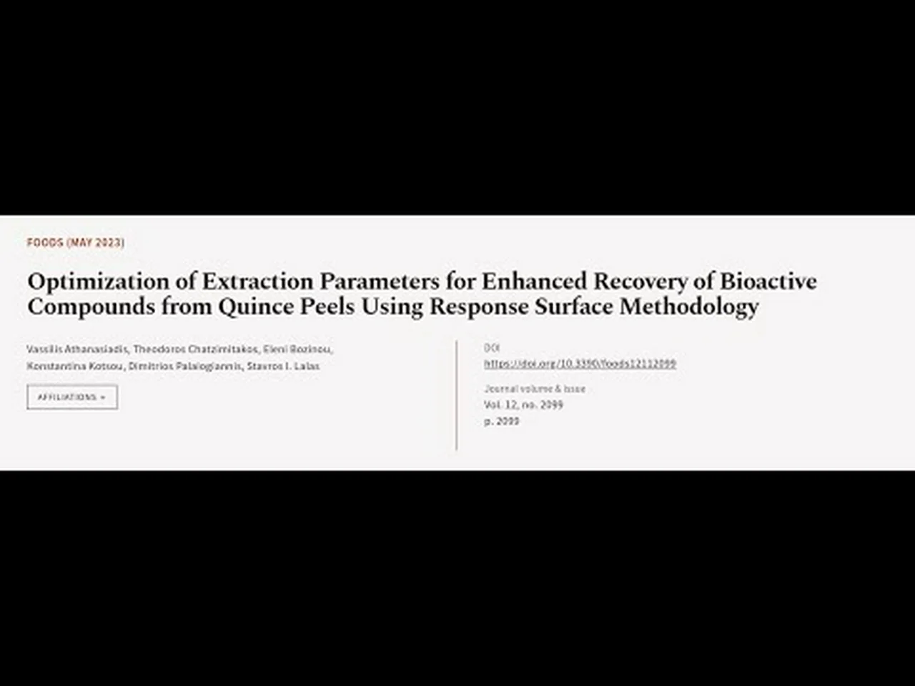 ### Keywords ###<br />#quincepeels #extraction #responsesurfacemethodology #ultrasound #pulsedelectricfield #polyphenols #RTCLTV<br /><br />### Article Attribution ###<br />Title: Optimization of Extraction Parameters for Enhanced Recovery of Bioactive Compounds from Quince Peels Using Response Surface Methodology<br />Authors: Vassilis Athanasiadis, Theodoros Chatzimitakos, Eleni Bozinou, Konstantina Kotsou, Dimitrios Palaiogiannis ,and Stavros I. Lalas<br />Publisher: MDPI AG<br />DOI: 10.3390/foods12112099<br />DOAJ URL: <a href="https://doaj.org/article/96433f6192e441f88627e0a25f948bcc" target="_blank" rel="nofollow">https://doaj.org/article/96433f6192e441f88627e0a25f948bcc</a><br />Source URL: <a href="https://www.mdpi.com/2304-8158/12/11/2099" target="_blank" rel="nofollow">https://www.mdpi.com/2304-8158/12/11/2099</a><br /><br /><br /><br />### Image Attribution ###<br />We used stable diffusion to programmatically generate the background images. <br />Viewer discretion is advised.<br /><br />### Channels ###<br />YouTube Channel: <a href="https://www.youtube.com/@socialrtcltv" target="_blank" rel="nofollow">https://www.youtube.com/@socialrtcltv</a><br />Odysee Channel: <a href="https://odysee.com/@social_rtcl_tv" target="_blank" rel="nofollow">https://odysee.com/@social_rtcl_tv</a><br /><br />### Video Timestamps ###<br />0:00:00 - Summary <br />0:01:07 - Title <br />0:01:16 - Outro <br />0:01:20 - End <br />
